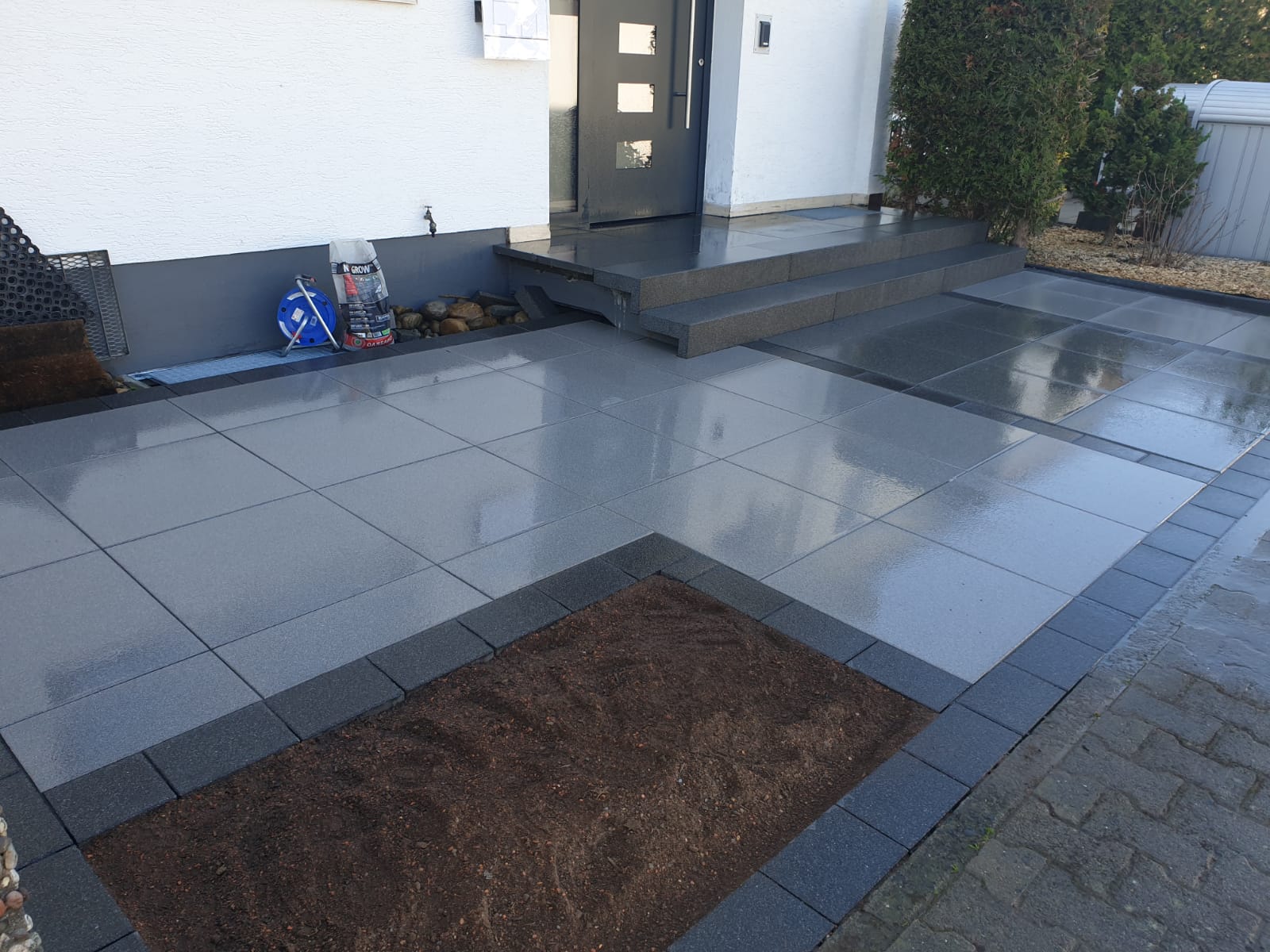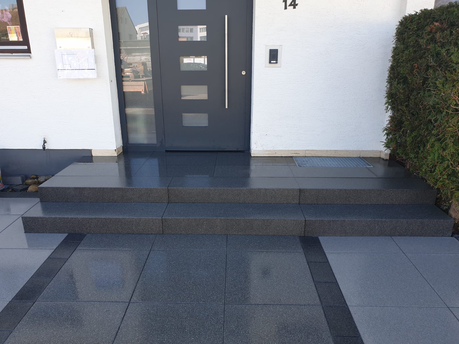 Diese Art von Eingangsbereich ist nicht nur funktional, sondern auch ein visuelles Highlight und wertet die gesamte Fassade auf. Wir beraten Sie gerne zu Farbkonzepten, Materialkombinationen und Geländeanpassungen – für einen langlebigen und repräsentativen Hauseingang.