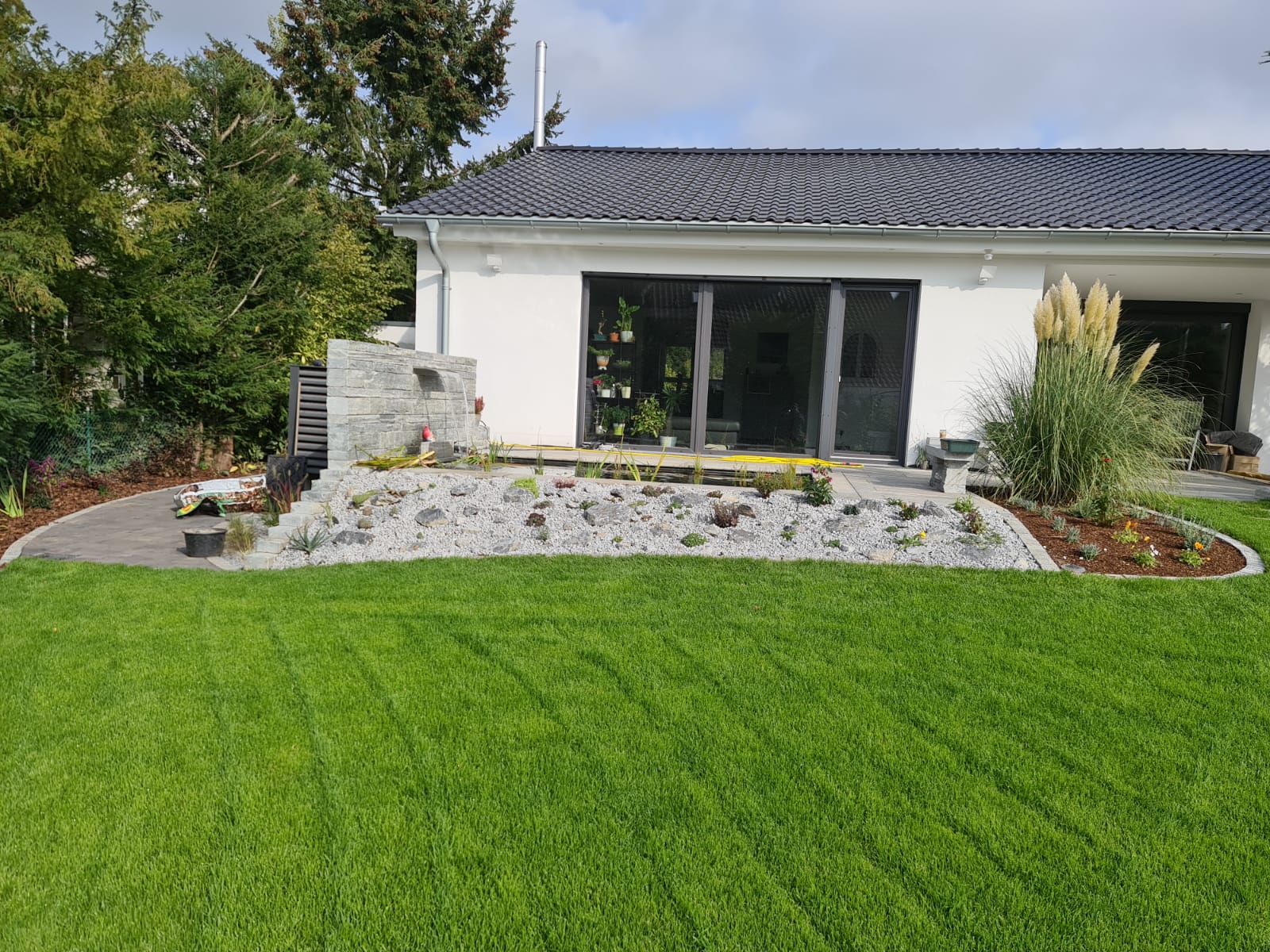 Die gesamte Außenanlage wurde in enger Abstimmung mit den Bauherren geplant und umgesetzt – funktional, hochwertig und mit Blick fürs Detail. Das Projekt zeigt unsere Kompetenz in Hangbefestigung, Teichbau, Erdarbeiten und der Kombination von Pflaster- und Plattenbelägen im modernen Gartenbau.